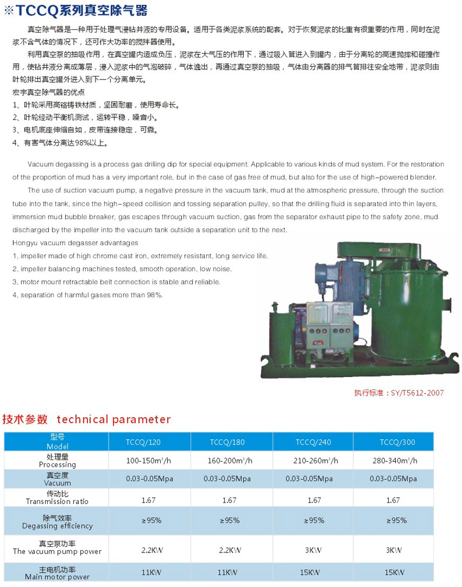 真空除氣器是一種用于處理氣浸鉆井液的專用設(shè)備。適用于各類的配套,對于恢復(fù)泥漿的比重、穩(wěn)定泥漿的粘度性能,降低鉆井成本,有很重要的作用。同時,也可當作大功率的攪拌器使用。